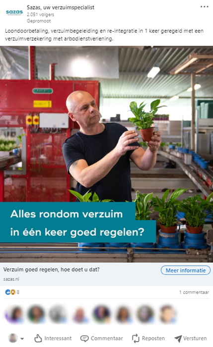 Afbeelding 8 en 9: Sazas advertenties – A/B test met twee verschillende maar ook consistente uitingen.